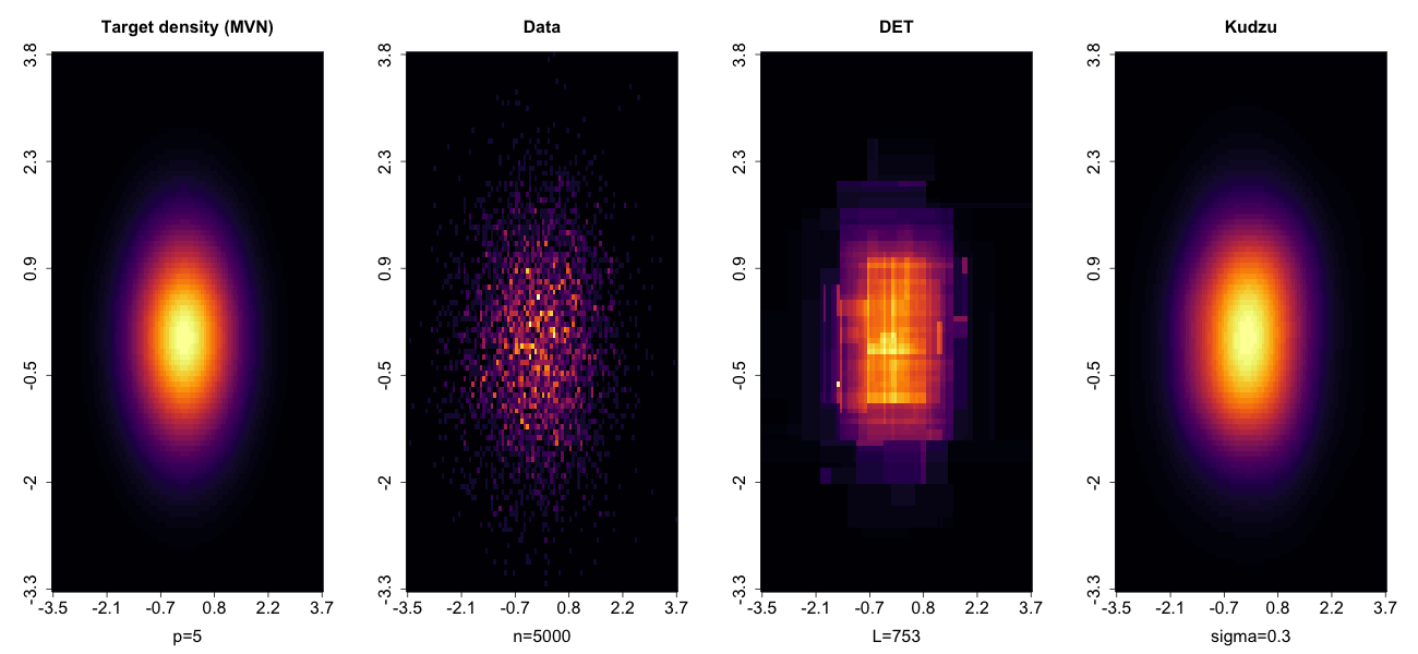 I call this the kudzu density function, named after the kudzu vine (Japanese arrowroot), which is an extremely fast-growing plant that grows over, and smooths out, the shapes of trees. All the important facts of kudzu density function work to date is in the pre-print paper in development, which you can download here.